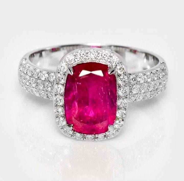 Ruby Ring 💍 2.20 carat Oval Cut | pigeon blood red color| Natural Ruby | Origin Burma Myanmar | GGI Certified. 3 gram 18K white gold