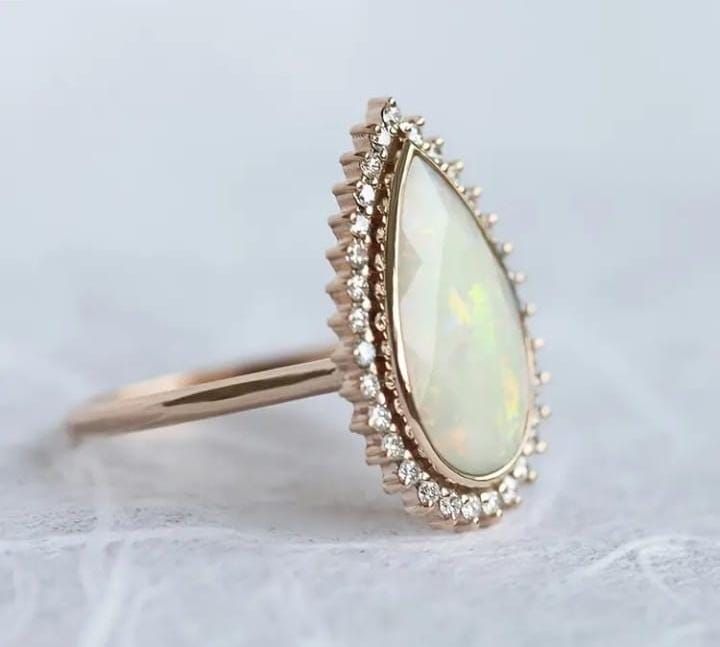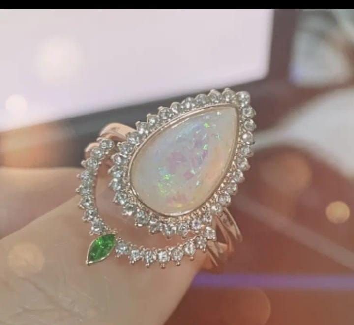 3.0 carat White Opal and Moissanite Diamond Ring 💍 | 3gram 18K Gold Ring
