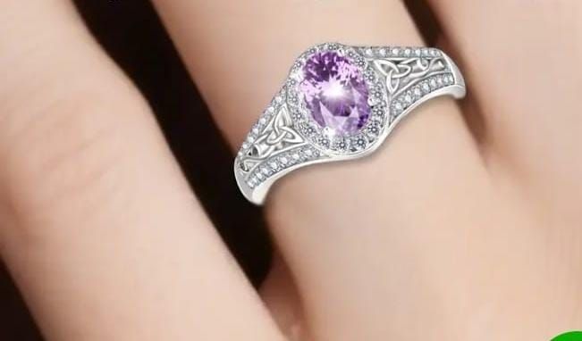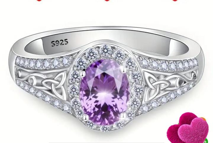 Amethyst Ring 💍 3.0 carat Oval shape | Lavender color| Moissanite Diamond | GGI Certified. 3 gram 18K white gold