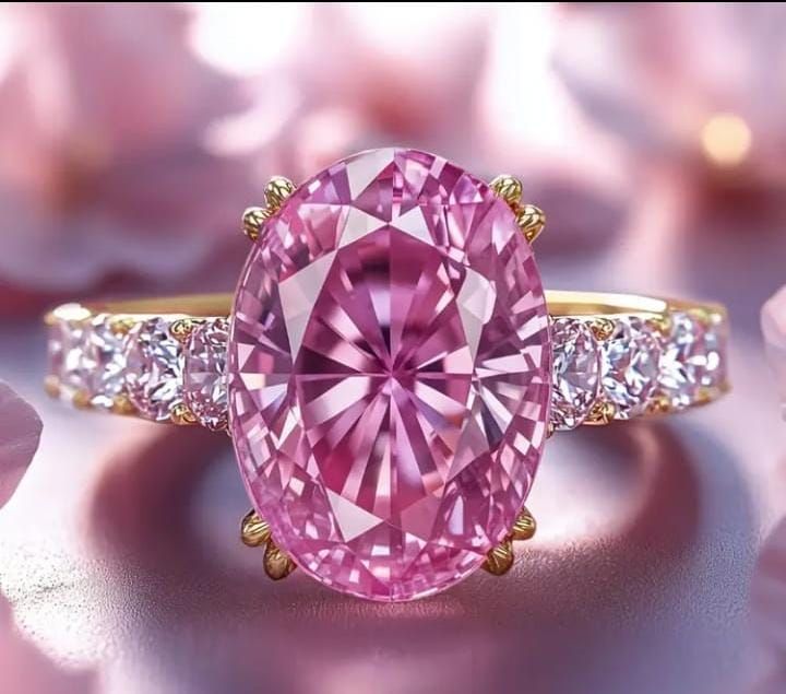 Rose quarts Ring 💍 4.0 carat Oval and mix shape | Pink Rose Quarts color| Moissanite Diamond | GGI Certified. 3 gram 18K gold