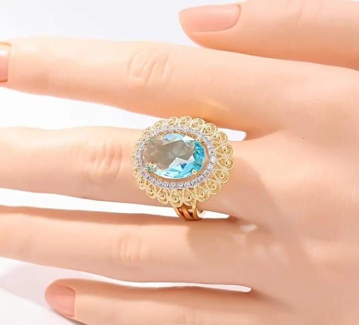 4.0 carat Aquamarine Moissanite Diamond Ring 💍 | 3gram 18K Gold Ring
