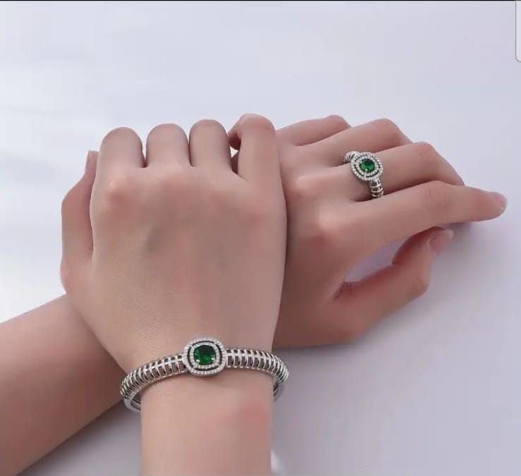 Emerald Engagement Ring 💍 Green 2.45 ct , Zambian Natural Emerald with 66 ct Diamond,925 sterling silver